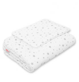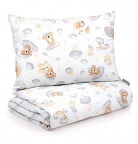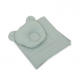 Dvipusis kūdikio pagalvės ir anklodės komplektas. Tinkamai pasiūtas užpildas/paminkštinimas, net dažnai skalbiant, išlaiko formą, o užpildas nejuda.