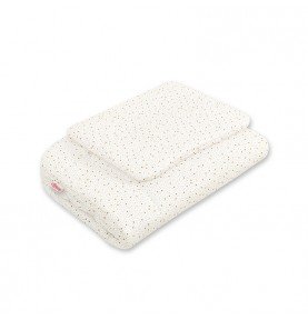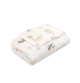 Dvipusis kūdikio pagalvės ir antklodės komplektas. Tinkamai pasiūtas užpildas/paminkštinimas, net dažnai skalbiant, išlaiko formą, o užpildas nejuda.