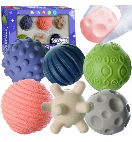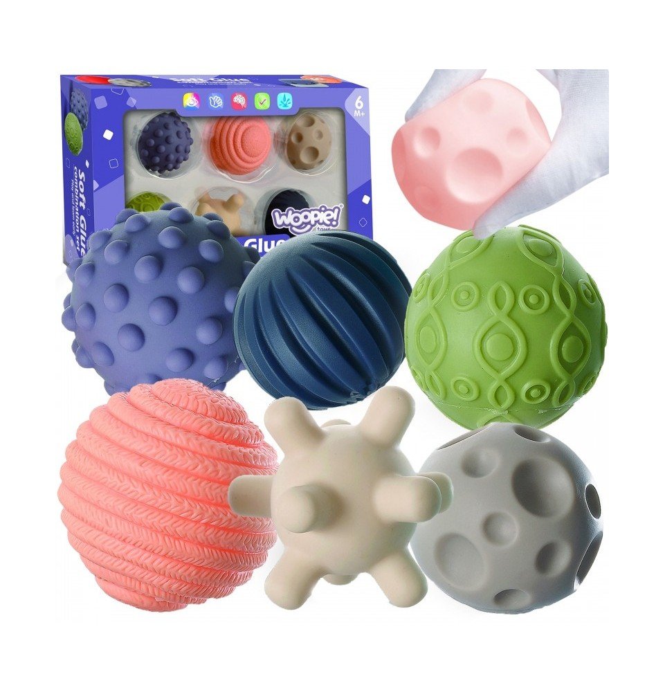 Sensoriniai kamuoliukai Woppie Baby sužavės kiekvieną mažylį. Savo patraukliomis formomis, spalvomis ir gebėjimu skleisti garsus spaudžiant, jie puikiai stimuliuoja vaiko regos ir klausos koordinacijos, smulkiosios motorikos ir lytėjimo pojūčio vystymąsi. Kaladėlės pasižymi išgaubtomis formomis, įvairiomis tekstūromis / raštais ir formomis . Jos yra minkštos ir malonios liesti. Dėl savo struktūros jos taip pat puikiai tinka kaip kramtukas. Šis gaminys, pasižymintis gražiomis, prislopintomis spalvomis, tinka vaikams nuo 6 mėnesių amžiaus.