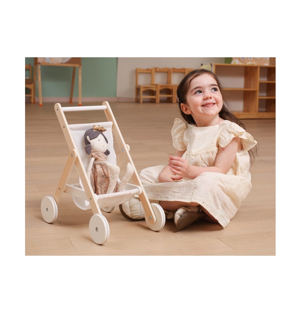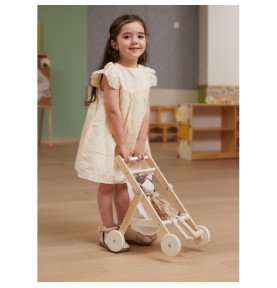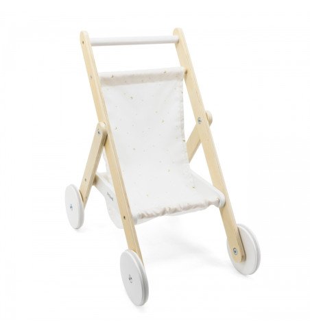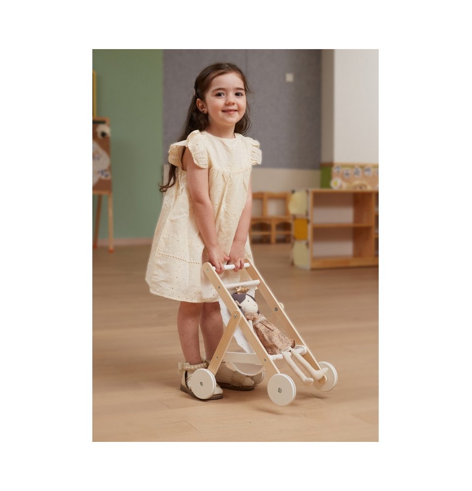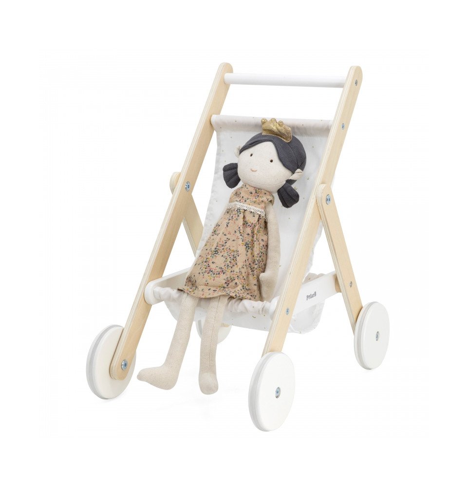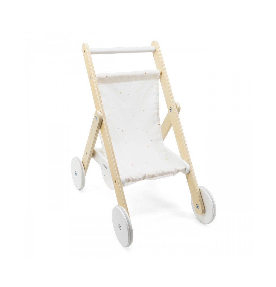 VIGA PolarB medinis vežimėlis lėlėms – tai nuostabus žaislas, kuris nukelia vaiką į lėlių priežiūros ir smagaus žaidimo pasaulį. Rėmas pagamintas iš tvirto bukmedžio, o vežimėlio lopšio audinys dekoruotas žavingu žvaigždžių ir mėnulio raštu. Dideli ratai su guminėmis detalėmis užtikrina stabilų ir tylų riedėjimą, todėl mažylis gali „vaikščioti“ po įvairius paviršius. Po sėdyne yra praktiškas krepšelis, puikiai tinkantis mažoms lėlių detalėms, kas padidina žaislo funkcionalumą. Tai ne tik žaidimas – vežimėlis skatina vaiko empatiją, vaizduotę ir motorikos įgūdžius.