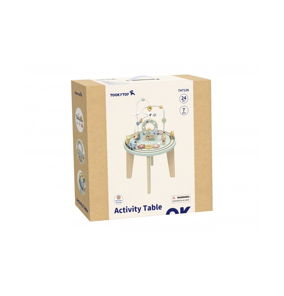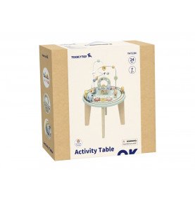 TOOKY TOY medinis užsiėmimų stalas – tai žaislas, kuris ilgiau išlaiko vaiko dėmesį dėl siūlomų veiklų įvairovės. Jis skatina stovėti, tyrinėti ir lavinti smulkiąją motoriką, koordinaciją, loginį mąstymą bei kūrybiškumą.