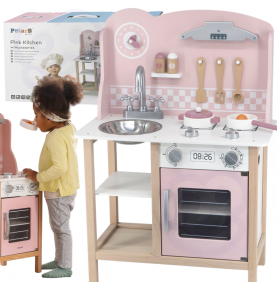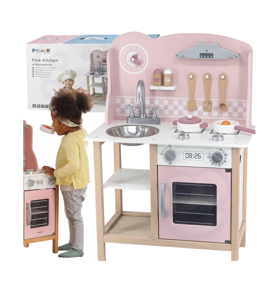 Bendras maisto gaminimas – tai puikus būdas mokytis per žaidimą. Ši medinė vaikų virtuvė leidžia mažiesiems kurti savo mėgstamus patiekalus, vaidinti kasdienes situacijas ir džiaugtis tikra virtuvės atmosfera. Komplekte rasite kriauklę, orkaitę ir viryklę, tad vaikas gali gaminti „maistą“ visai šeimai ar draugams.